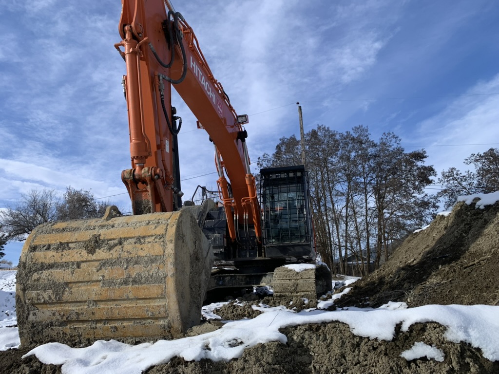 His favourite thing right now is heavy machinery. So when I saw a few excavators working on our street we just had to go for a walk and take a closer look.