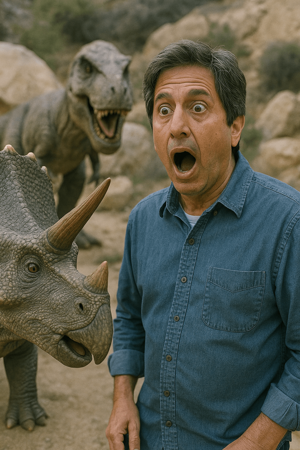 It’s true that the images do look very good now, but the prompts were very simple and even then AI doesn’t understand what “fixing a printer” is – maybe it thinks you need a screwdriver for every fix? As for discovering dinosaurs – it looks more like Ray is surprised at the dinosaurs behind/around him? He definitely doesn’t seem to be discovering anything.