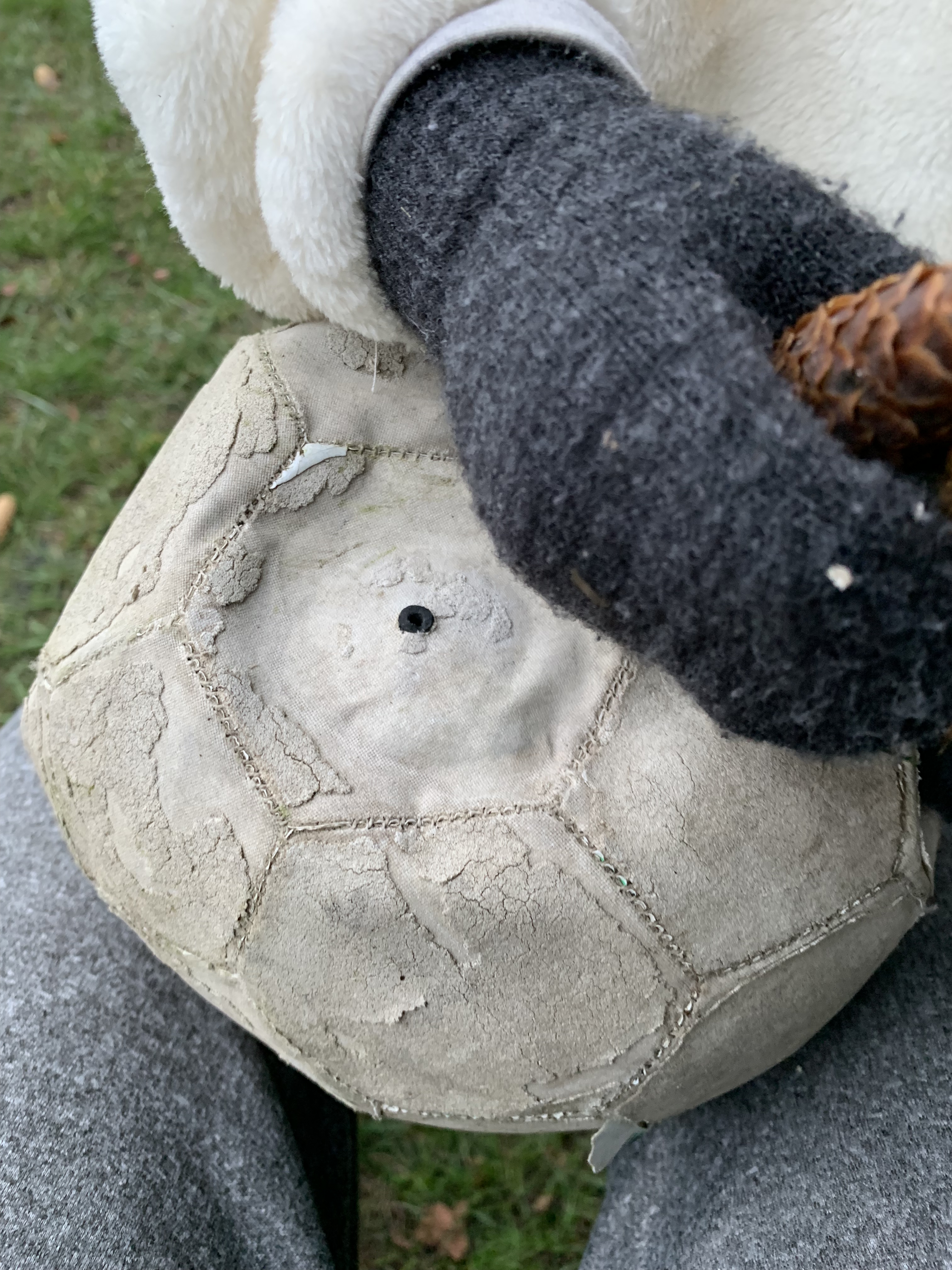We found a broken football ball under our tree.
